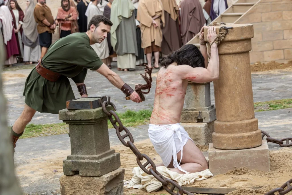 The flagellation of Christ is incorporated.