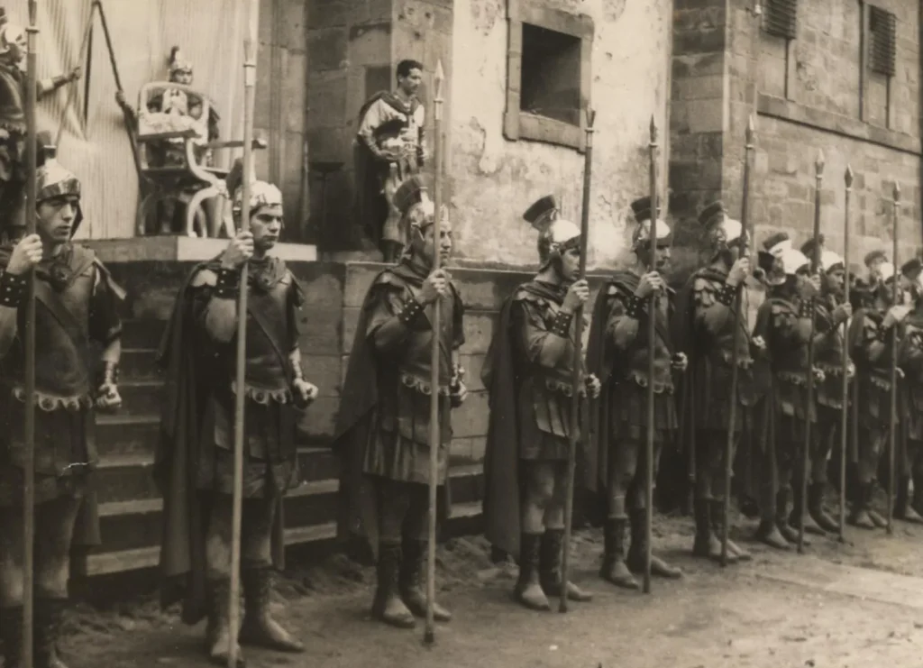 However, it wasn’t until 1865 that documentary evidence emerged of the appearance of figures who would accompany the traditional procession. In that year, the “Invincible Pharisaic Company” was created, introducing Roman soldiers, called “Pharisees” by the people of Balmaseda. At the end of the 19th century, more traditional figures such as the Marys, Mary Magdalene, Jesus, and Simon of Cyrene were added to the Good Friday procession.